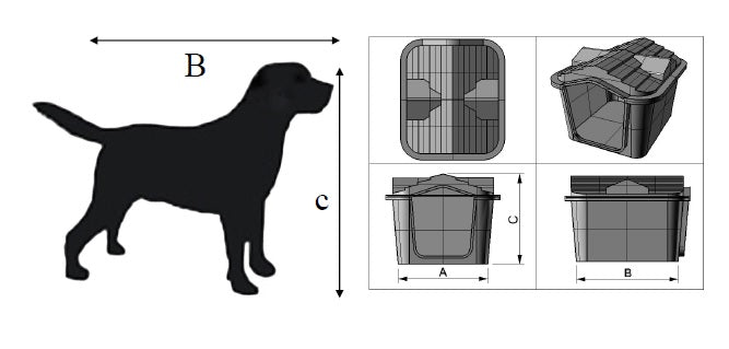 Favor de considerar que lo largo de la casa no debe ser mayor al 25% del largo de su mascota (excluyendo la cola) ni 50% mayor a la altura cuando se encuentra parado.