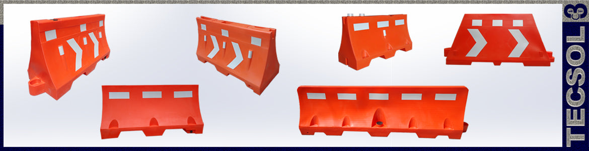 Barreras viales canalizadoras para facilitar el almacenamiento y transporte. Elaborados con polietileno de primera calidad.