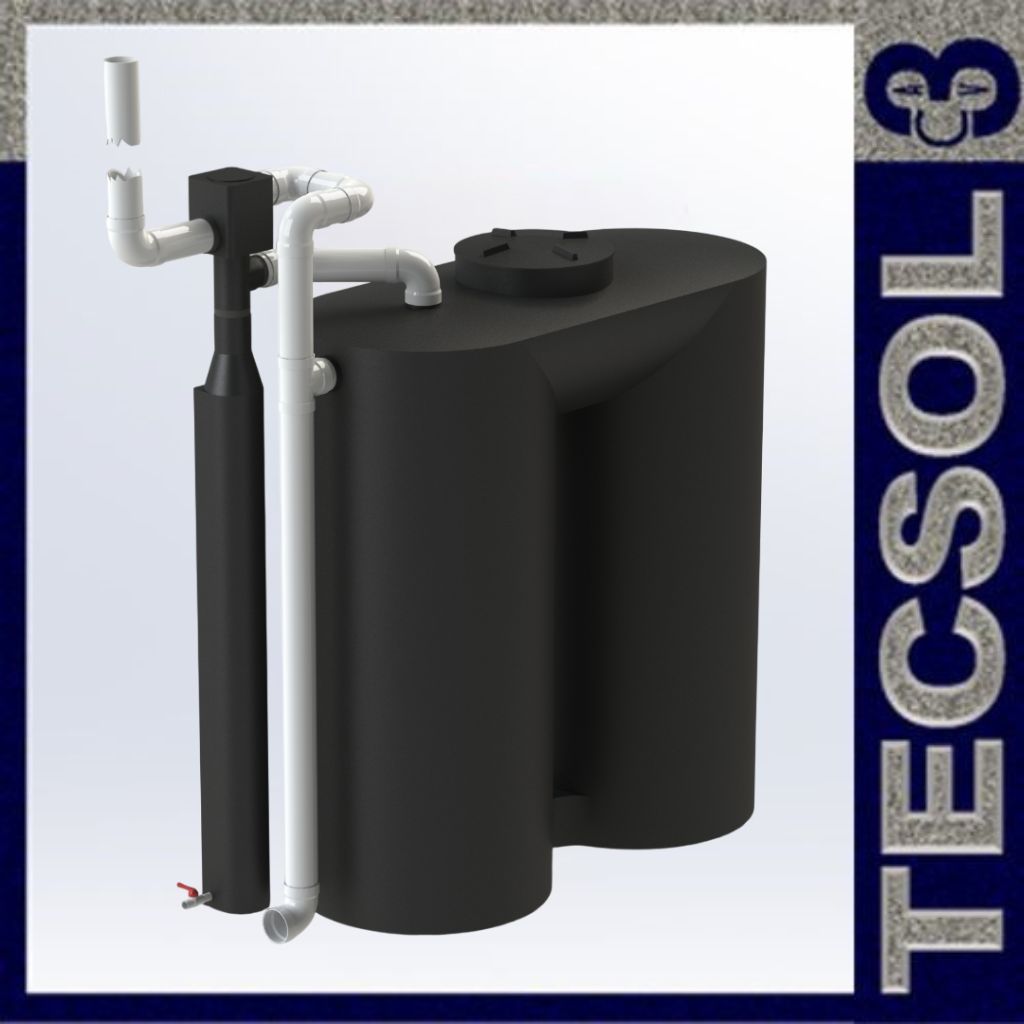 - Tanque separador de primeras lluvias de 50 litros con salida de desagüe de 1/2”.
